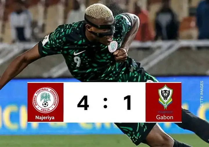 Kungiyar Super Eagles ta Najeriya ta doke Gabon da ci 4–1, wanda hakan ya tabbatar da matsayinta a wasan karshe na neman gurbin shiga Gasar Cin Kofin Duniya ta 2026.
